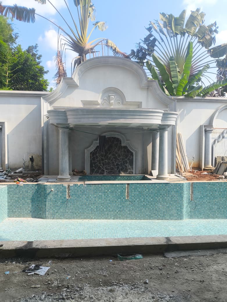 - 3. Elemen Dekoratif Taman dan Eksterior (Patung beton, air mancur, pot ornamental)